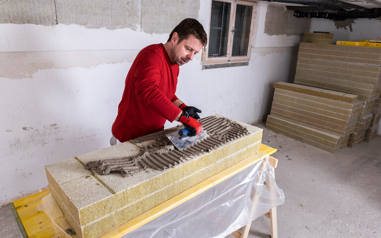 Mineralwolle Dämmplatten kleben und armieren