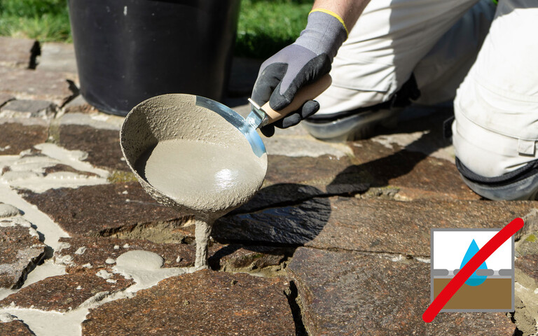 Pflastersteine, Natursteine, Terrassenplatten schnell und einfach mit dem wasserundurchlässigen Pflasterfugenmörtel verfugen.