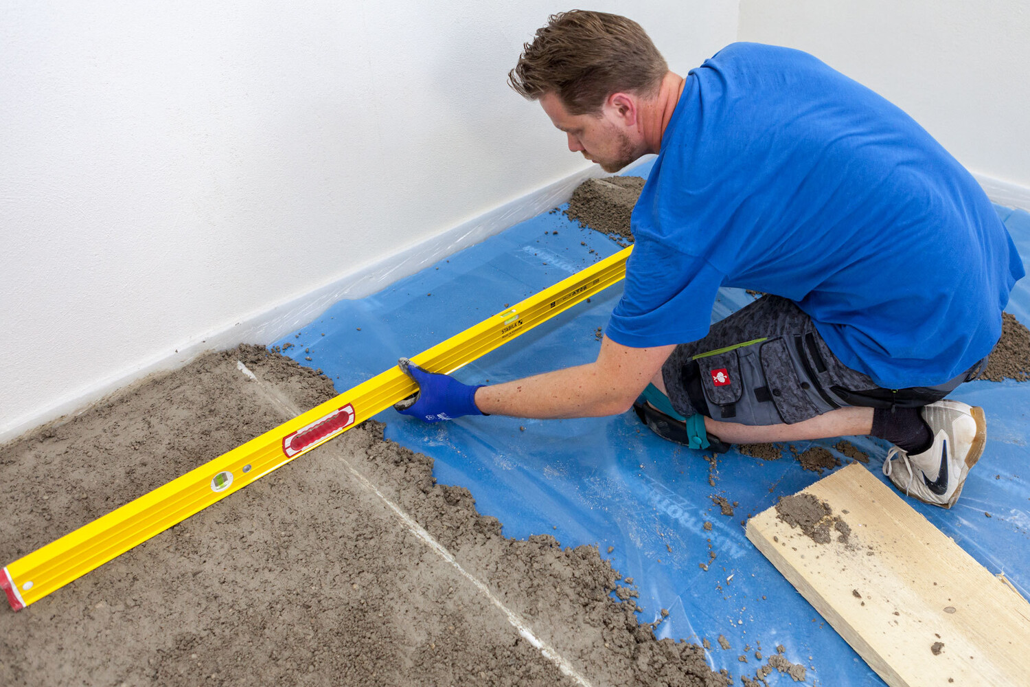 Bei Verbundestrich muss eine sorgfältige Untergrundvorbereitung durch Reinigen erfolgen.