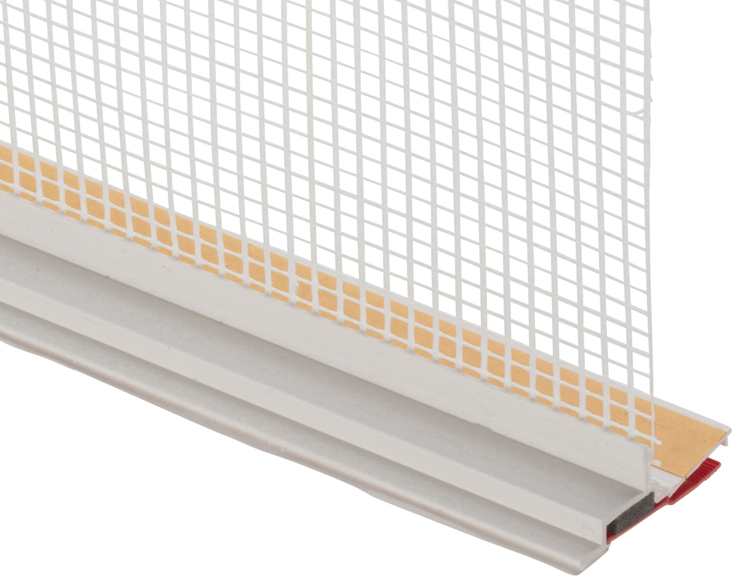 - Selbstklebendes Kunststoffprofil mit integriertem PUR-Band und Gewebe