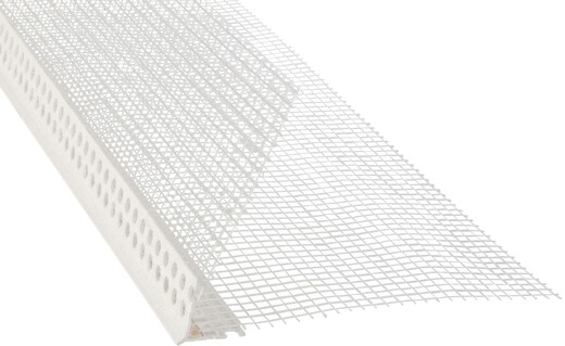 Gewebe-Eckwinkel in Profi-Qualität mit Kunststoffkante aus Hart PVC und beidseitiger, alkalibeständiger Gewebefahne als Kantenschutz an Aussenecken. Zum Einbetten in Armierungsspachtel bei Fassadendämmungen, Fassadensanierungen oder in Dünnschichtputzen