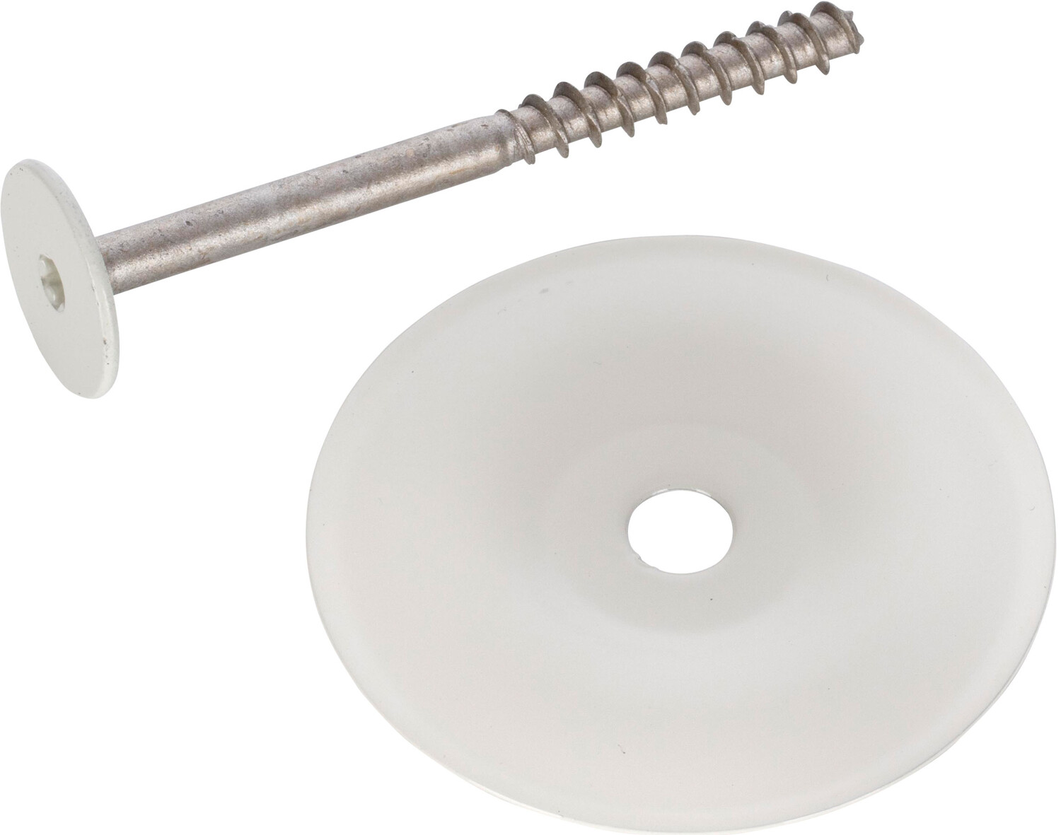 Bauaufsichtlich zugelassene Deckendämmschraube aus Metall für Kellerdecken aus Beton. Nutzbar in Kombination mit Kellerdecken-Dämmteller für Kellerdeckendämmung aus Mineralwolle für die zusätzliche Verdübelung. Weiss lackiert