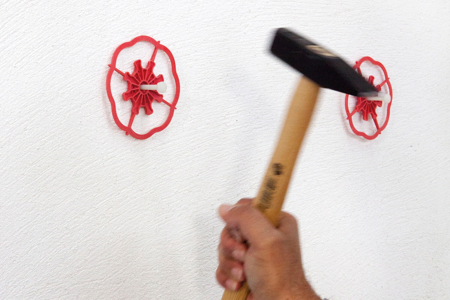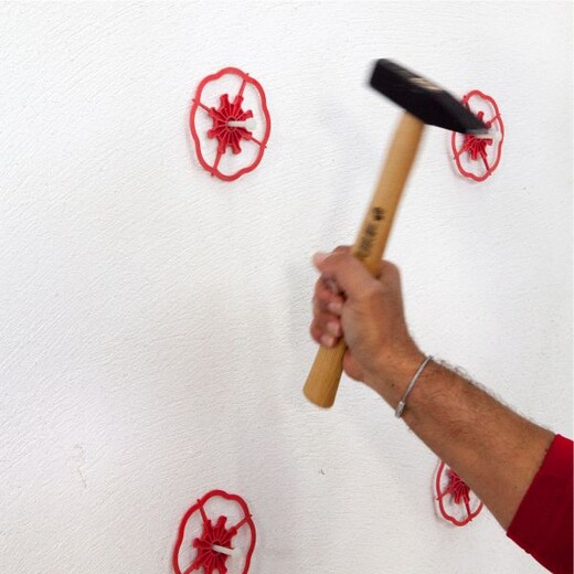 Kunststoffnagel des Baumit Klebeankers als Dämmstoffdübel mit einem Hammer bündig einschlagen.