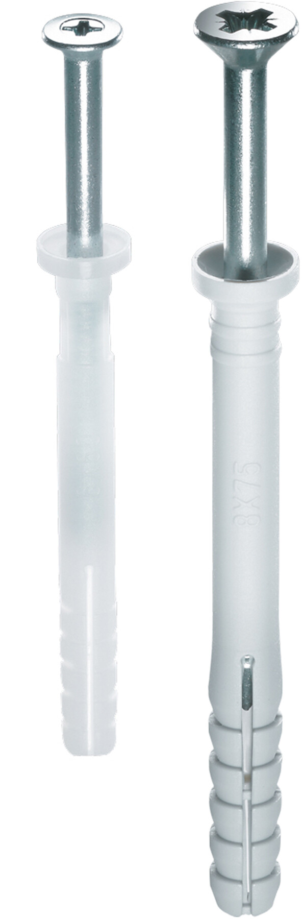 Die Nageldübel von Baumit haben einen kleinen Kragen, mit dem ein Durchrutschen durch das Setzloch am Anschraubsteg des Sockelprofils verhindert wird. Stecke den Nageldübel durch den Anschraubsteg in das vorbereitete Bohrloch und schlage den Nagel ein.