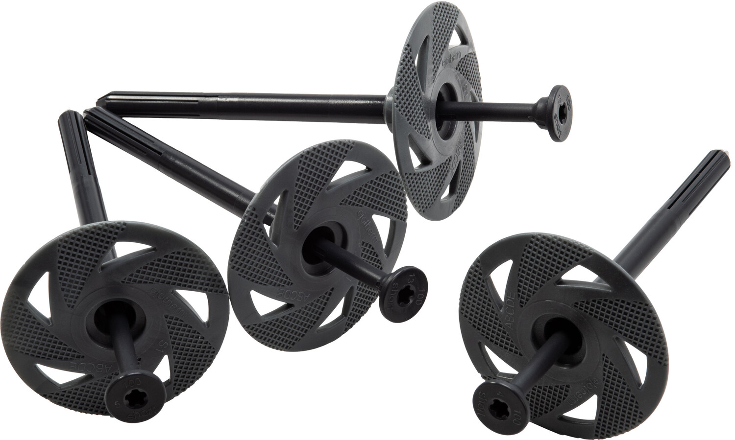Wärmebrückenoptimierter Schraubdübel mit bauaufsichtlicher Zulassung (ETA) für Beton, Vollsteine, Hohl- und Lochsteine und Porenbeton. Speziell für dünne Dämmstoffe innen und aussen von 20 bis 60 mm Dämmstoffdicke.