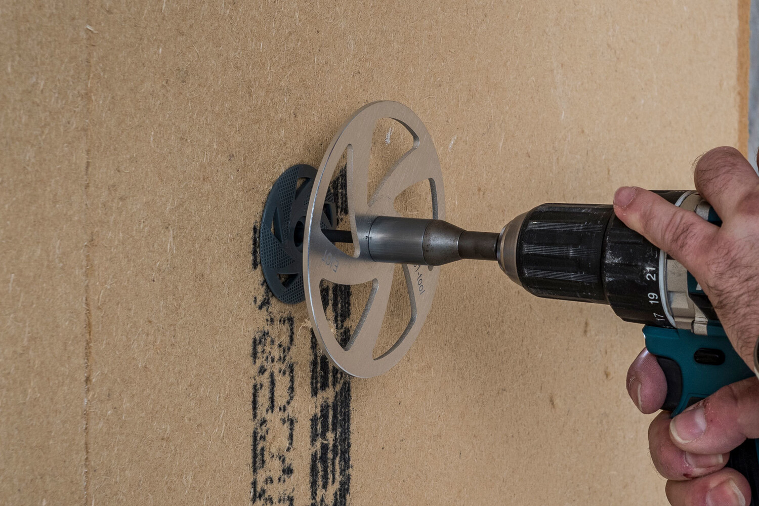 • Zum zusätzlichen mechanischen Befestigen von dünnen Dämmplatten, wie Innendämmung oder Laibungsplatten aus EPS, Mineralwolle oder Holzfaser-Dämmplatten.