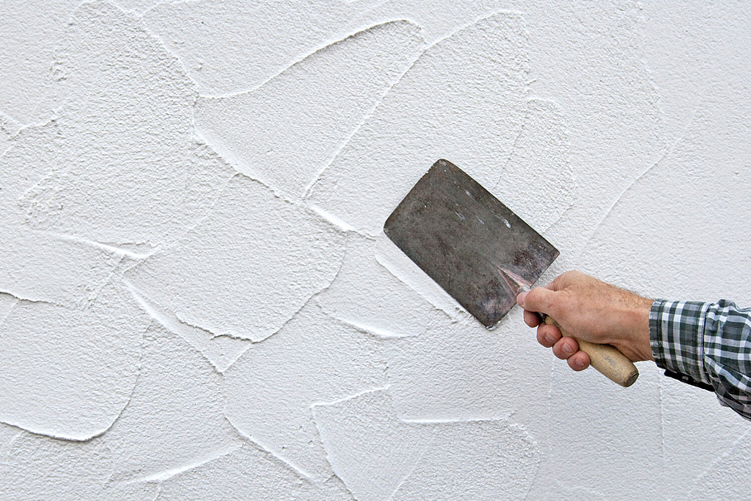 Ein rabotierter Grundputz ist für einen in Kornstärke aufgetragenen Feinputz nicht ausreichend. Hier ist eine Zwischenspachtelung, z.B. mit Baumit Kalkspachtel oder Kalkin Innenspachtel Fix erforderlich.