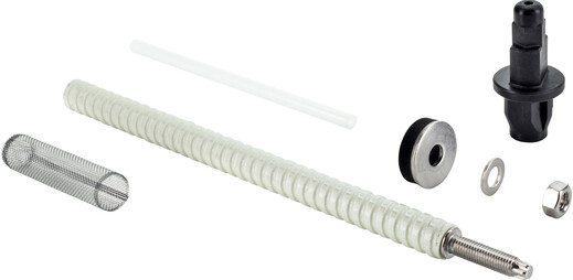 Für das Setzen der Drahthülse diese einfach auf den Stab des Befestigungssets aufstecken und bis ans Ende des Bohrlochs einführen. Beim Herausziehen des Stabes bleibt die Hülse im Bohrloch.