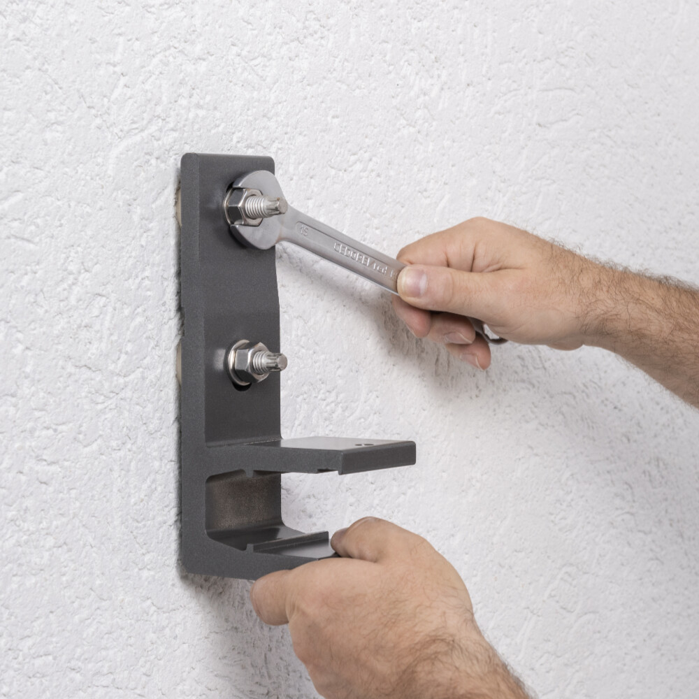 Im letzten Schritt montierst du die Konsole für die Markise, das Vordach oder die Öse für das Sonnensegel am Befestigungsset ISO Heavy. Durch die EPDM-Dichtung brauchst du keine weiteren Abdichtungen einzusetzen. Die Dichtung schützt das Setzloch bei fachgerechter Montage sicher vor eindringender Feuchtigkeit.