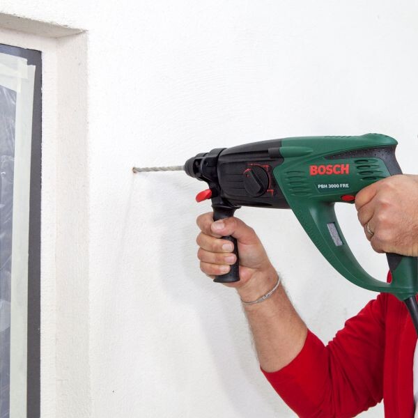 Mit einem zum Untergrund passenden Steinbohrer im Durchmesser 8 mm kannst du anschliessend die Dübellöcher bohren (z.B. mit dem Bosch Bohrhammer PBH 3000 FRE). Damit der Klebeanker optimal sitzt muss das Bohrloch ca. 10 cm tief sein.