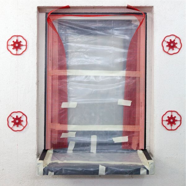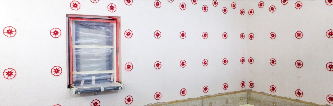 Der Untergrund wurde auf Tragfähigkeit geprüft. Hohl liegender Altputz wurde abgeschlagen und oberflächenbündig wieder mit Kalkzementputz ausgebessert. Vor dem Setzen des Klebeankers muss der Kalkzementputz komplett durchgetrocknet sein.