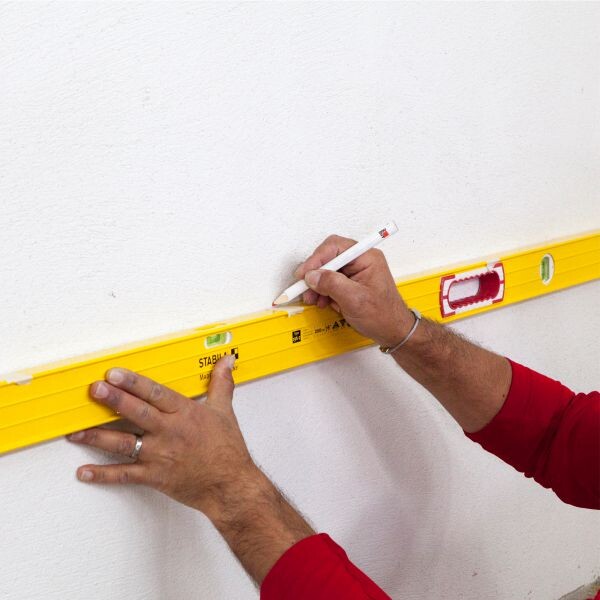 Alternativ kannst du diese Arbeiten natürlich auch mit einer Wasserwaage durchführen. Für ein schnelles Arbeiten empfehlen wir dir Wasserwaagen mit einer Mindestlänge von 150 cm.