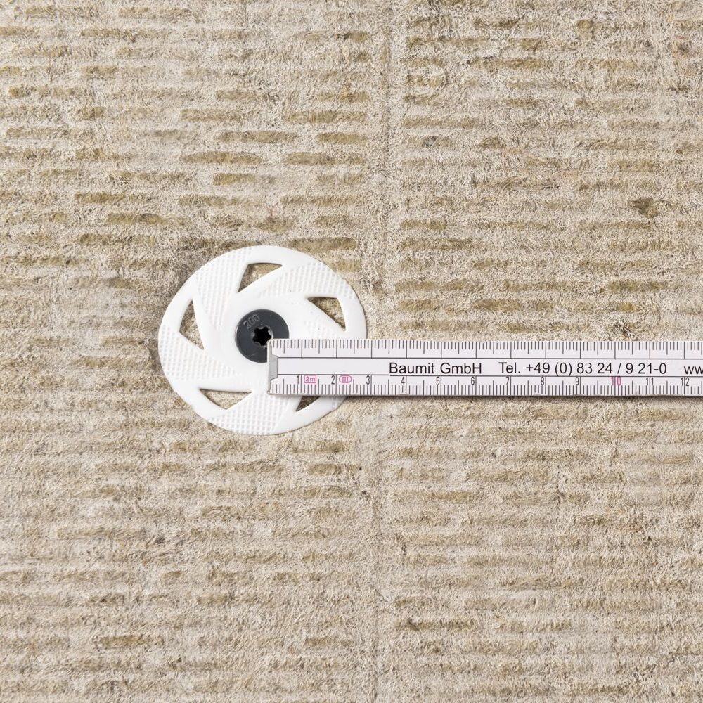 Möchtest du auf den Einsatz des Setzwerkzeuges bei der Verdübelung mit Thermotop Schraubdübels S1 in Mineralwolle 035 verzichten, empfehlen wir dir den Einsatz des Baumit Dübeltellers 90 mm.