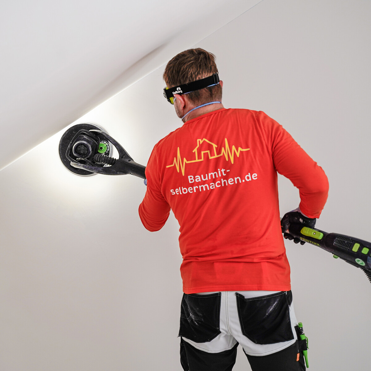 Tu peux poncer la surface au plus tôt après 48 heures. Même les ponceuses pour cloisons sèches équipées d'un système d'aspiration produisent de la poussière fine.