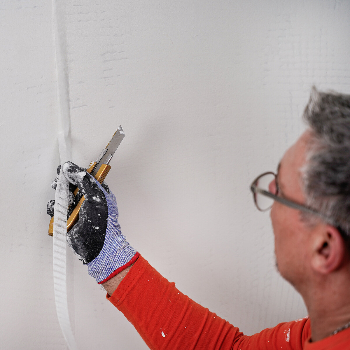 Avant de commencer les travaux de masticage, tu dois soigneusement masquer les éléments de construction adjacents, comme les fenêtres et les portes, afin de les protéger des salissures.