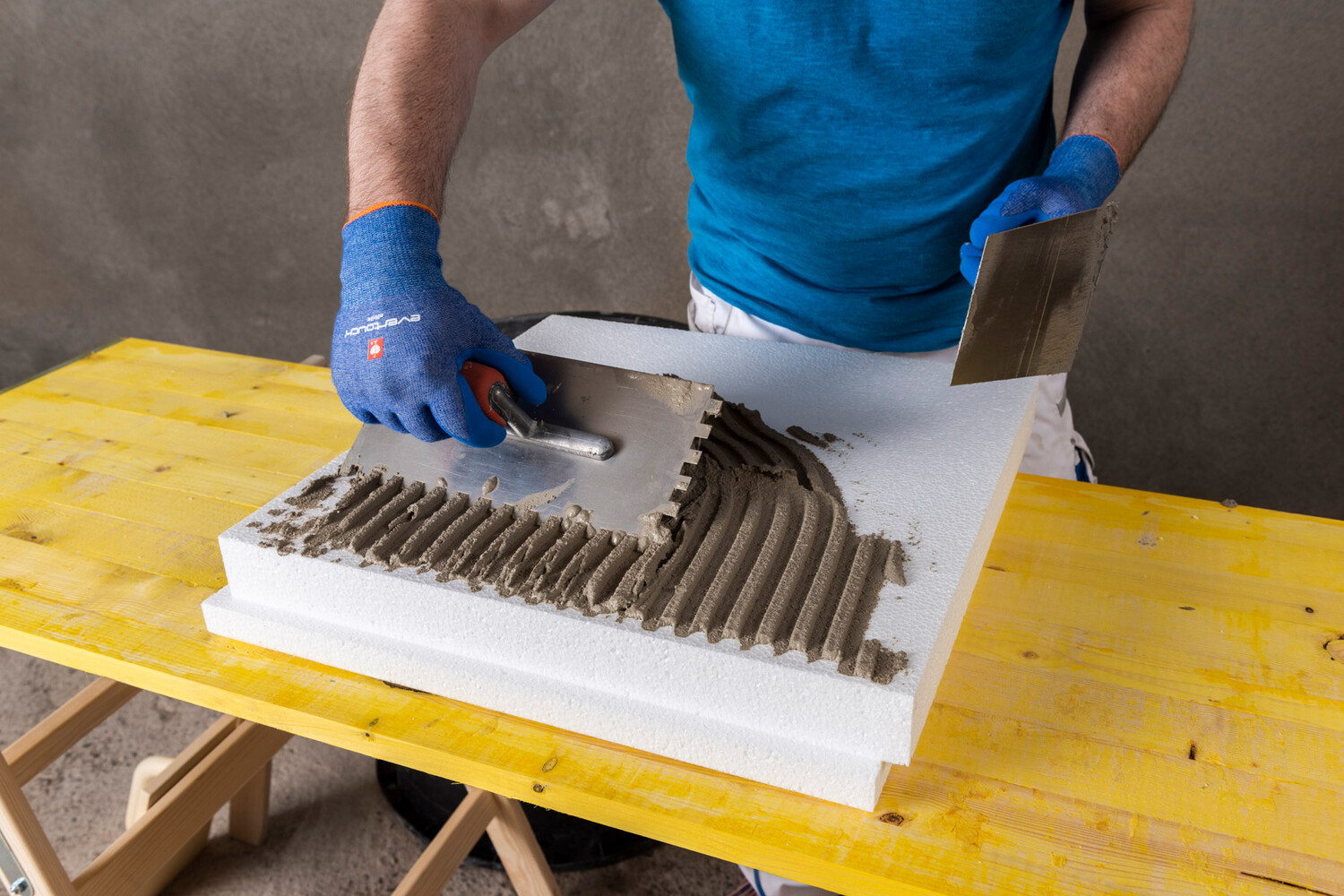 Le faible poids des panneaux isolants EPS (polystyrène expansé) facilite leur mise en œuvre dans la pratique. Par ailleurs, des panneaux isolants spéciaux à feuillure étagée sont proposés dans les dimensions de panneaux 50 x 50 cm, ce qui facilite encore la pose.