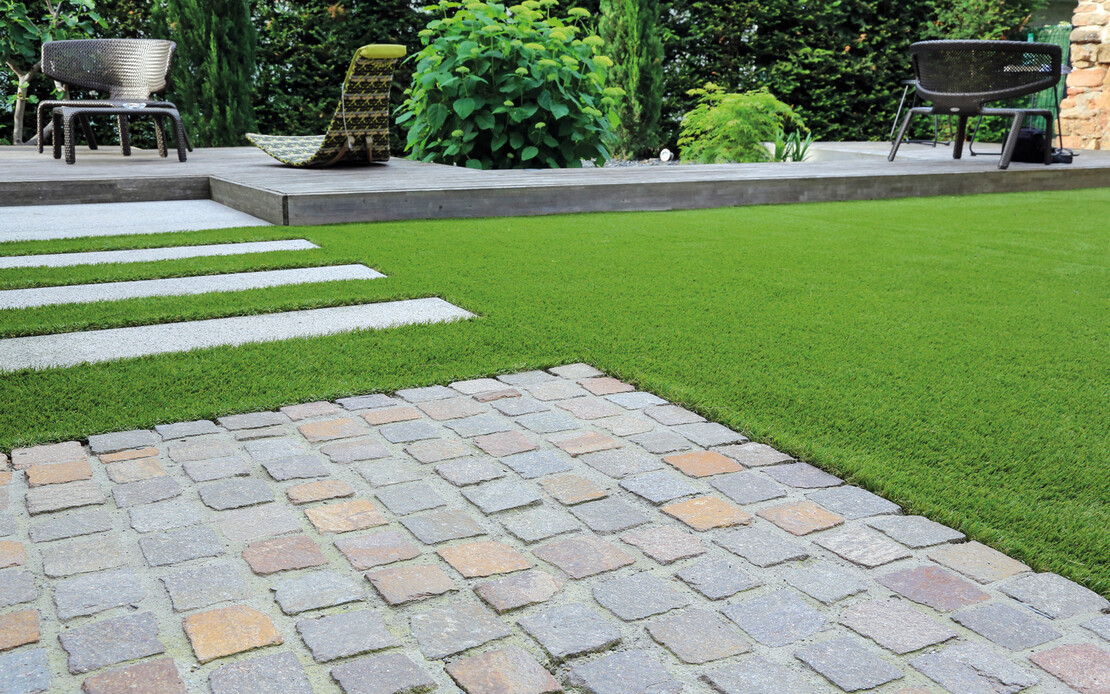 - Pour la pose de pierres naturelles, de pavés en béton et de dalles dans un lit de mortier épais dans les jardins privés et sur les terrasses.