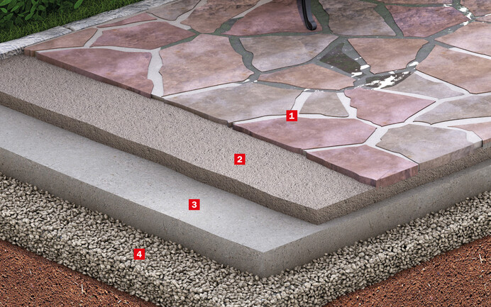 - Pour la pose de dalles en pierre naturelle (également dalles en béton, dalles polygonales, dalles en pierre de taille, porphyre, quartzite, céramique) selon la méthode à lit épais.