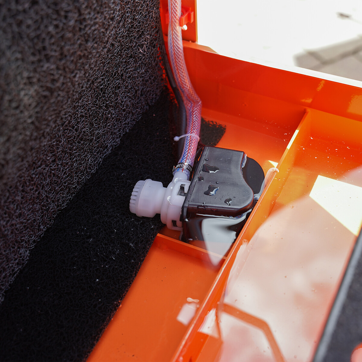 Installe la pompe de circulation si nécessaire. Sur certains modèles, il est également requis de placer un tapis de protection. Avant de démarrer, vérifie tous les dispositifs de sécurité de la tronçonneuse.