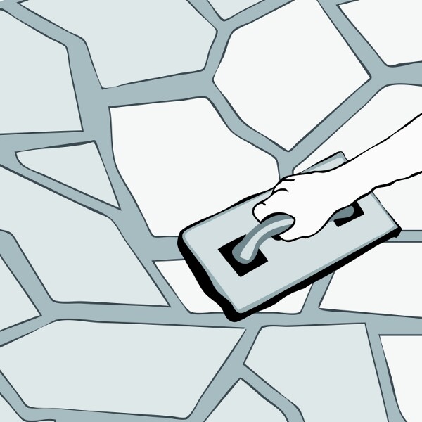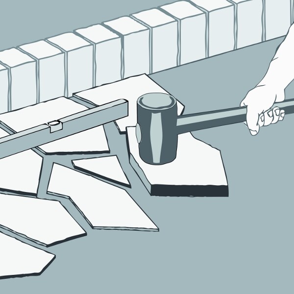 Poser les dalles dans le mortier frais pour la pose de pierres naturelles. Veille à ce que les dalles soient posées sans espaces vides, car l'eau peut s'infiltrer dans ces espaces et provoquer des dégâts dus au gel. Pour ne pas endommager les dalles, nous recommandons d'utiliser un maillet en caoutchouc.