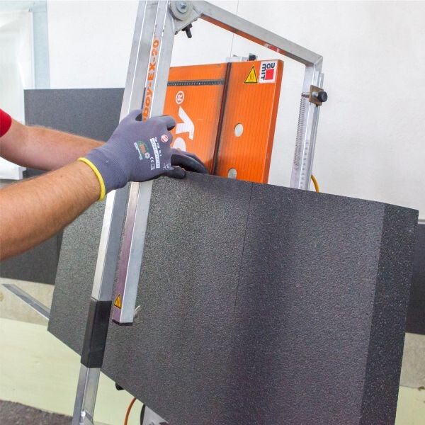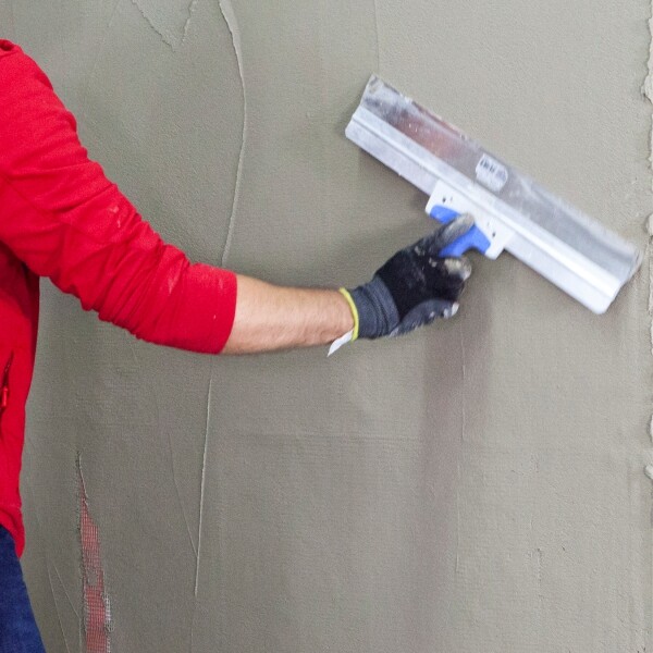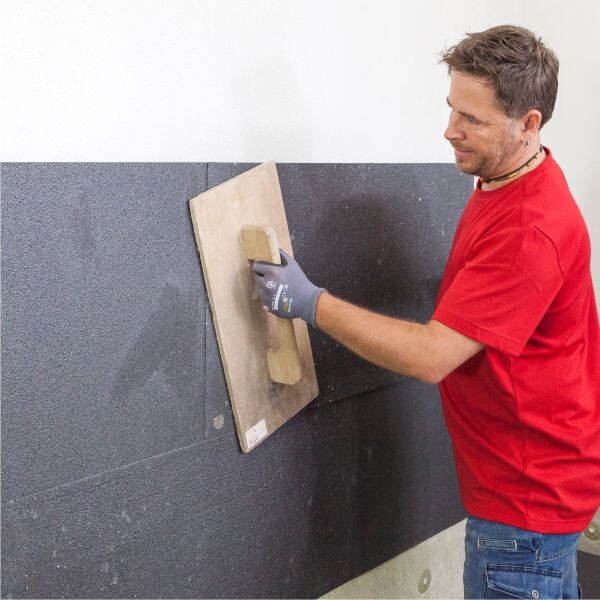 Pour mieux contrôler l'épaisseur de l'application, retire le matériau frais avec une truelle dentée de 10 mm.