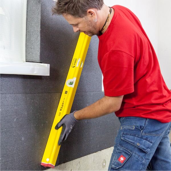 Vérifie que les panneaux isolants sont bien d'aplomb à l'aide d'un niveau à bulle.