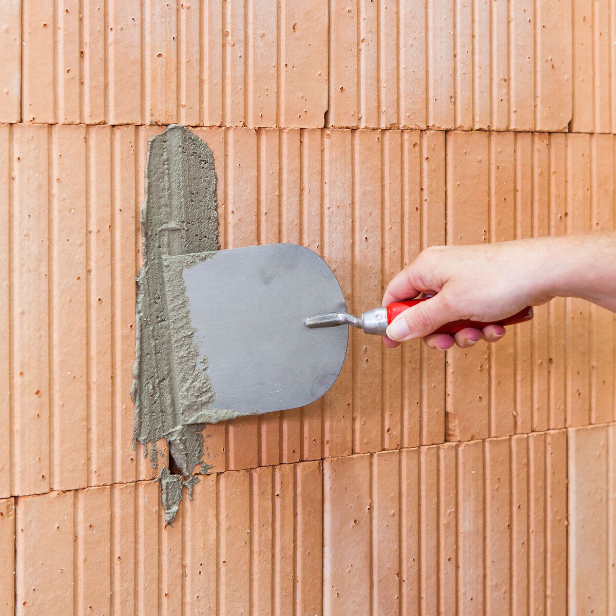 Avant de commencer à appliquer une couche de fond ou un enduit, il faut d'abord boucher les trous ou les joints de pierre ouverts avec de l'enduit.