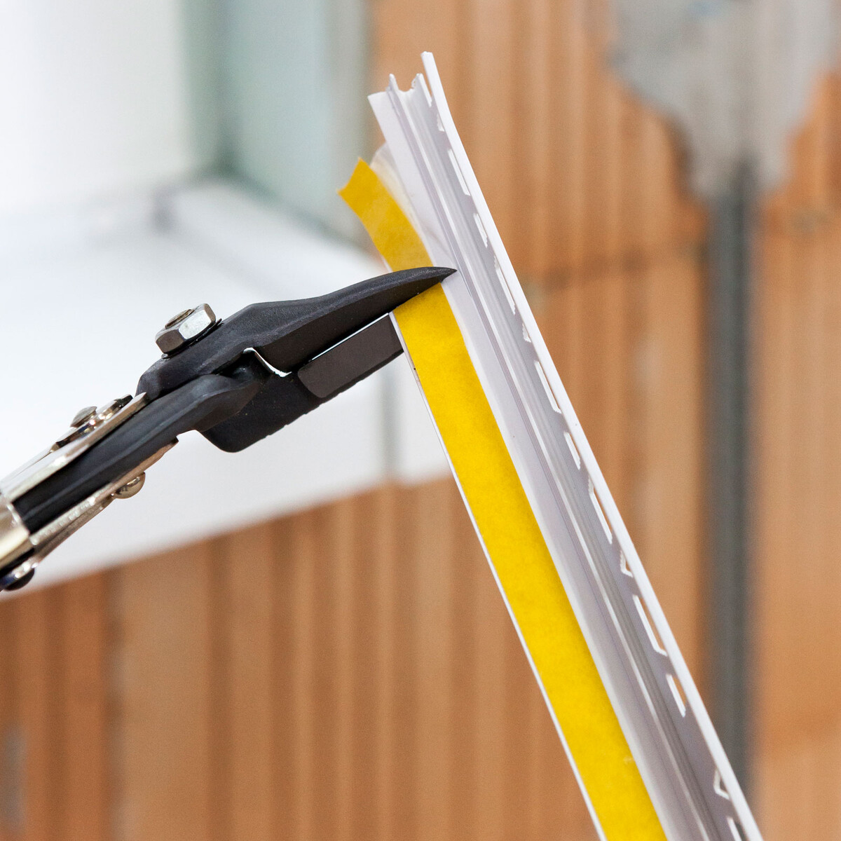 Une cisaille à onglet est une cisaille spéciale, par exemple pour les profilés en plastique tels que les baguettes de crépi, les cornières d'angle ou les baguettes de finition de carrelage.