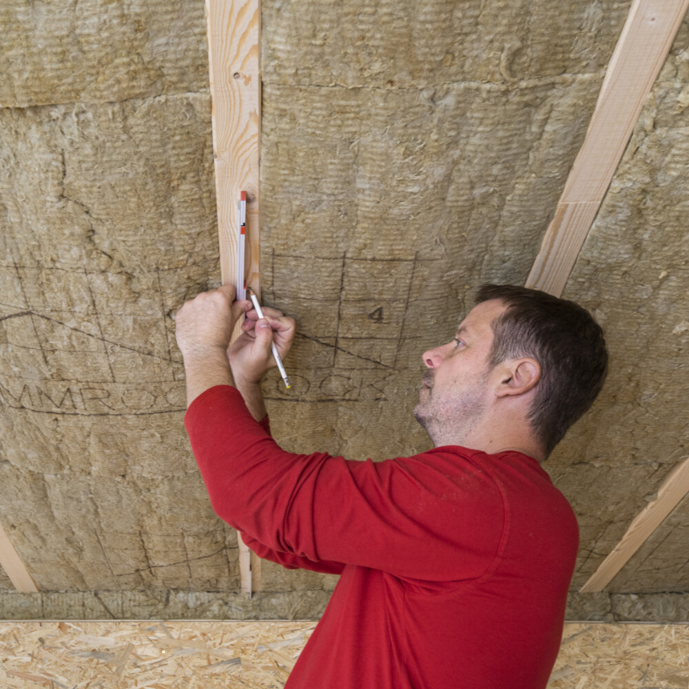 Avant de commencer la pose du Kalkin Klima-Board, nous te recommandons d'installer une isolation sous les chevrons comme couche d'isolation supplémentaire et niveau d'installation.