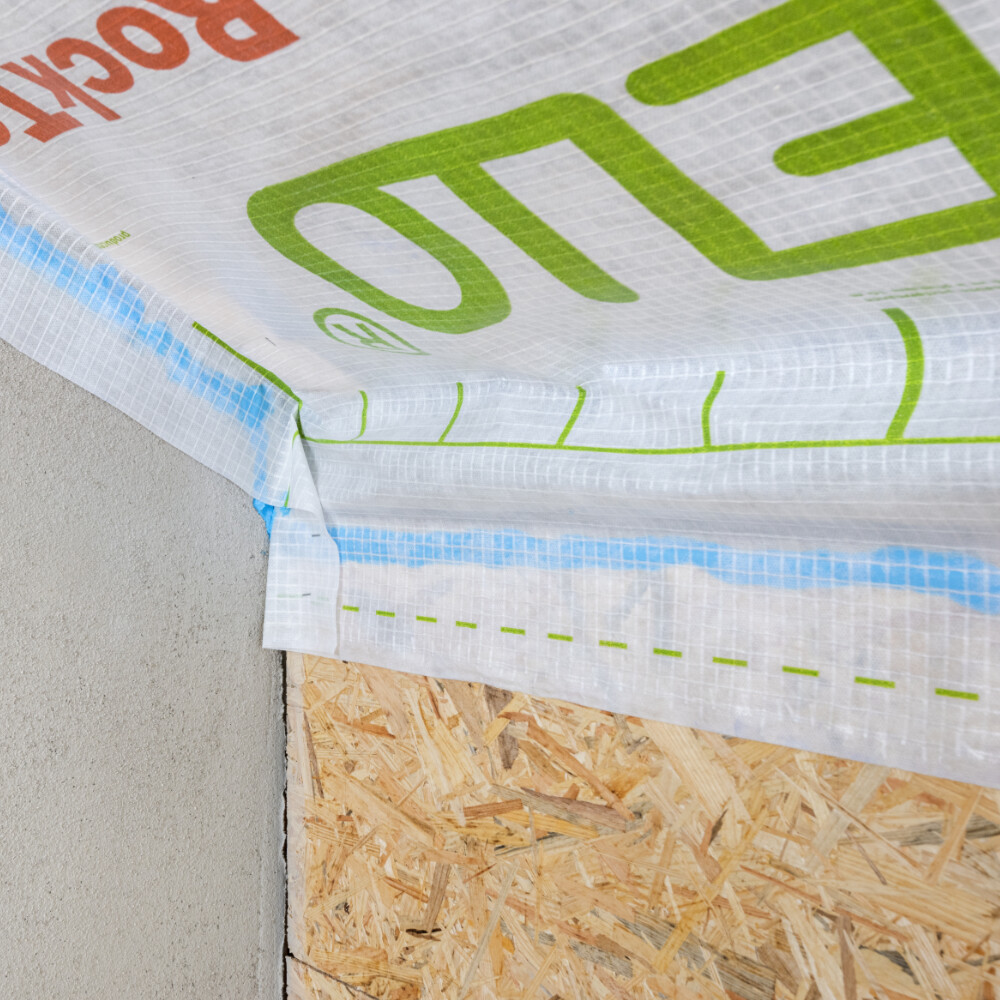 Dans les coins, le pare-vapeur doit être collé sans espace et de manière étanche à l'air. Nous te recommandons de coller le film avec un pli dans ces zones.