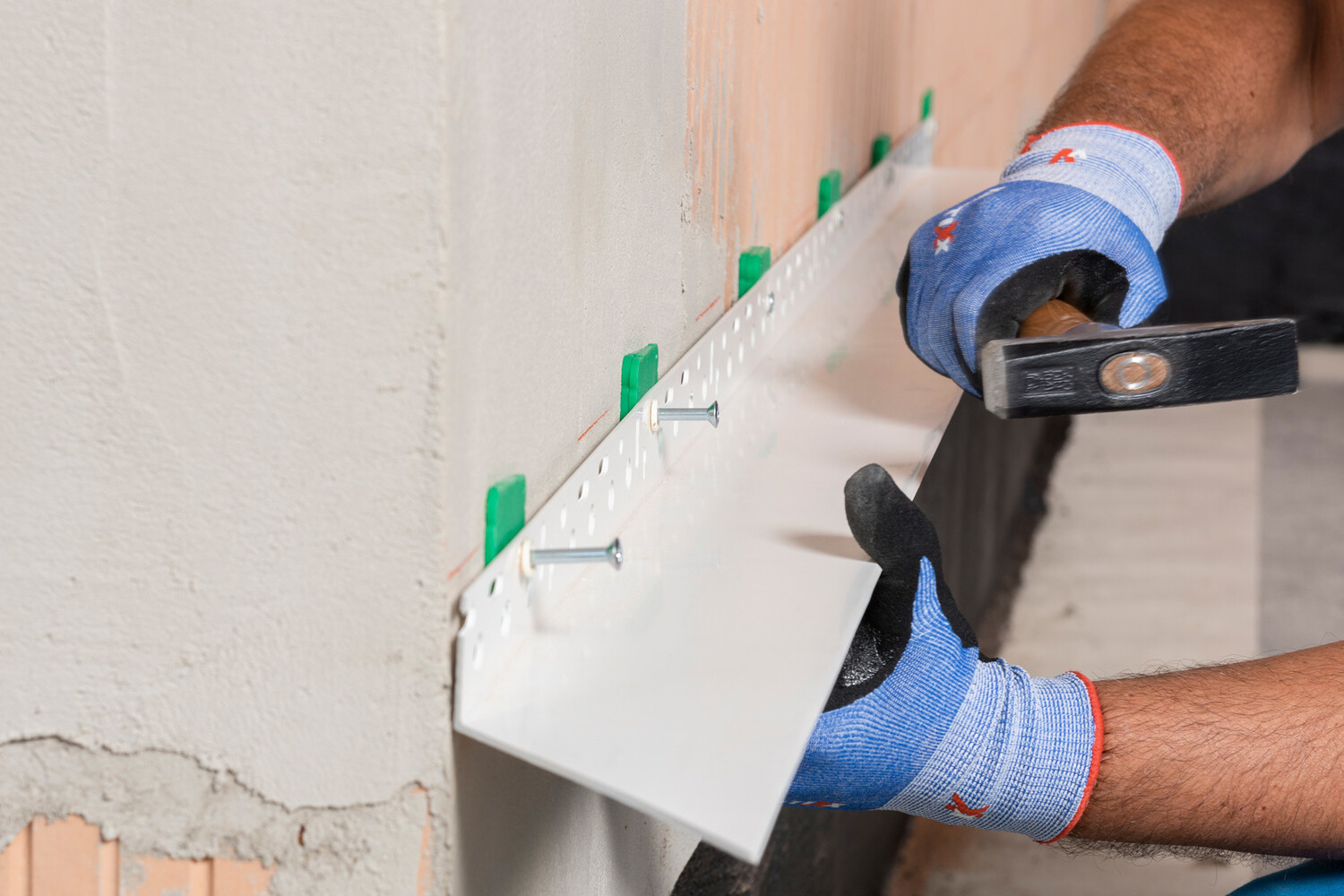 Les cales de compensation en PVC rigide sont idéales pour compenser les tolérances de façade lors de la pose des profilés de socle ITE. Elles se clipsent de manière sûre sur le corps de la cheville à frapper à tête collerette, facilitant une fixation plane et alignée. En épaisseurs de 3 à 15 mm.