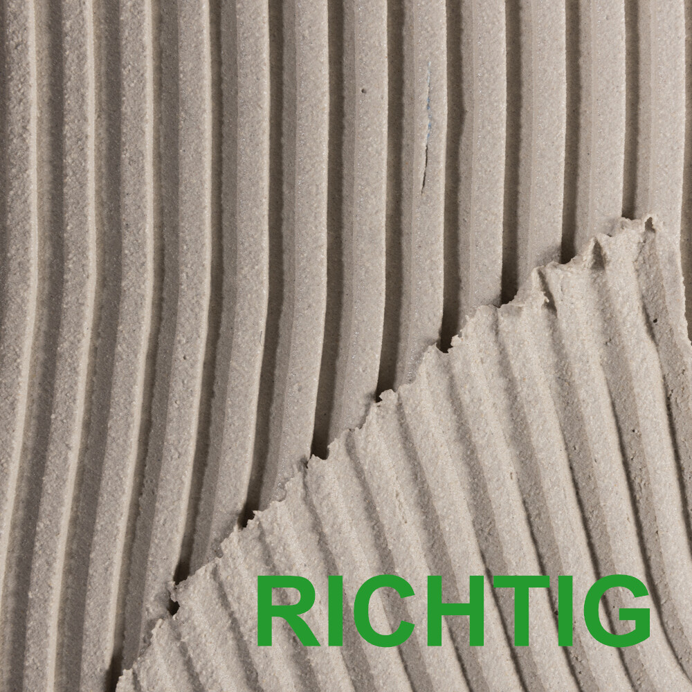Pour les bricoleurs et les amateurs, le peignage des dimensions de l'enduit avec une truelle dentée facilite le respect de l'épaisseur d'enduit prescrite. Dans notre cas, tu utilises une truelle dentée de 10 mm pour obtenir une épaisseur d'enduit d'armature de 4-5 mm après le lissage.