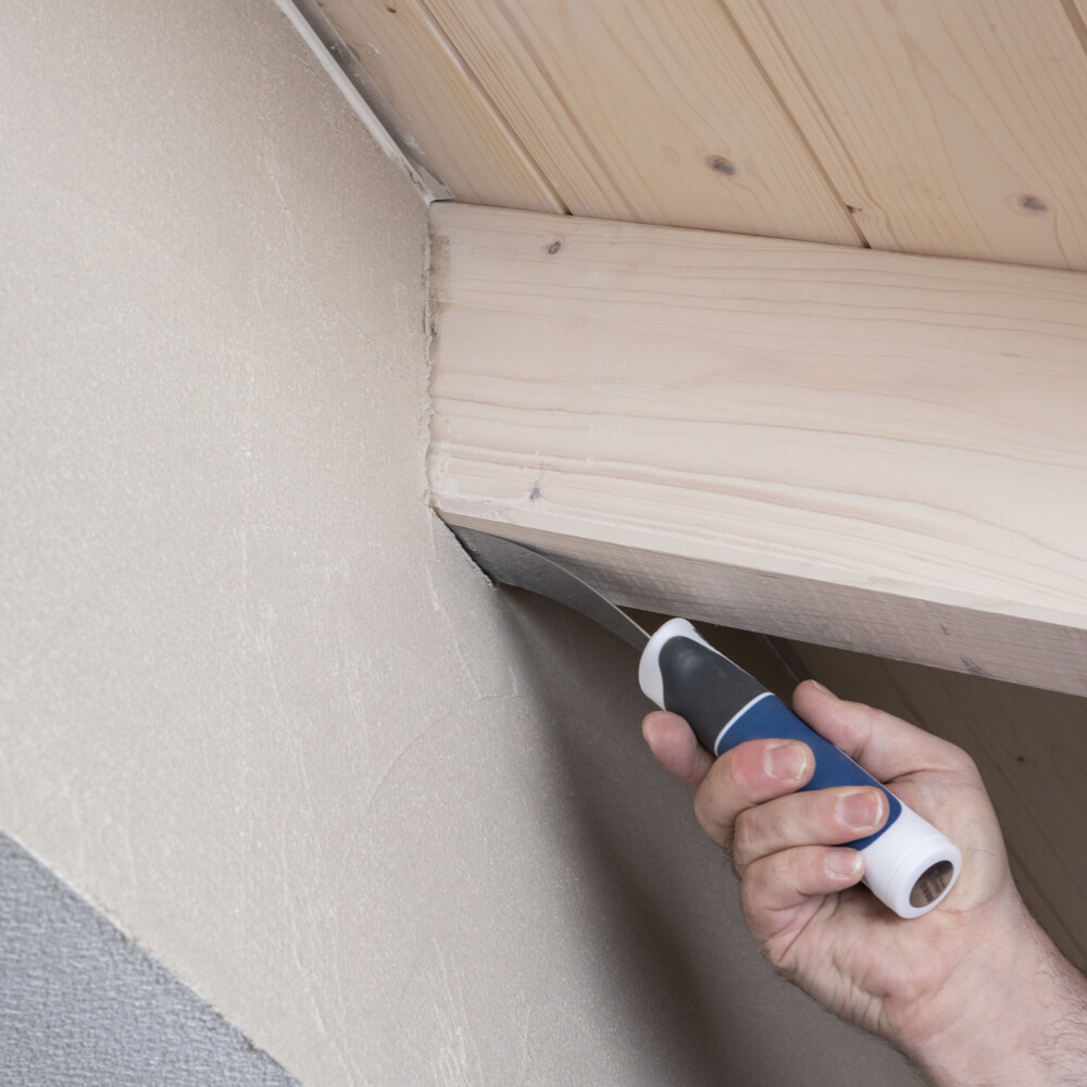 Sépare dès maintenant les éventuels raccords au bois à l'aide d'un cutter, d'un enduit de lissage ou d'un outil similaire.