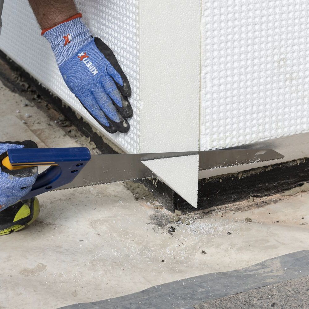Une découpeuse à fil chaud (découpeuse de polystyrène) est un soulagement considérable pour les longues coupes à un angle précis. Tu peux louer ces appareils chez un loueur de machines de chantier bien achalandé.