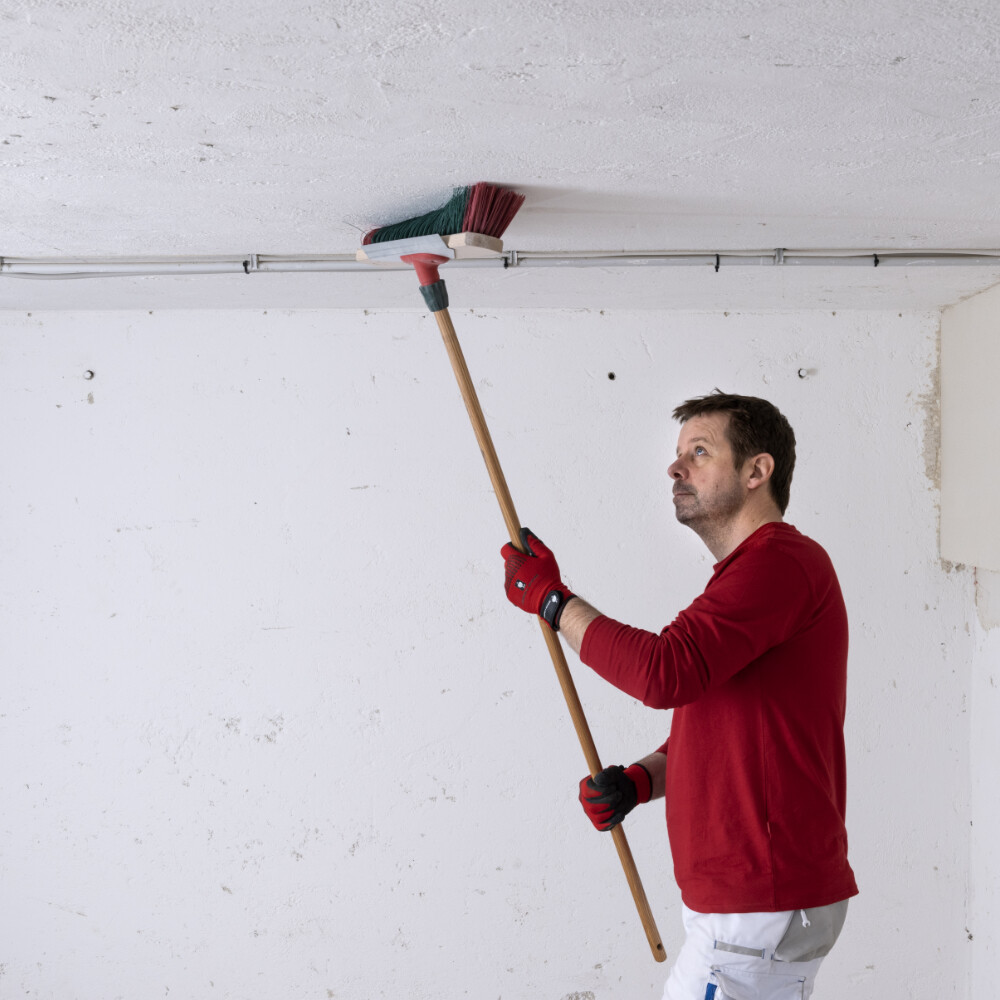 Dans un premier temps, tu nettoies le plafond de la cave en enlevant les composants non adhérents, la saleté, etc.