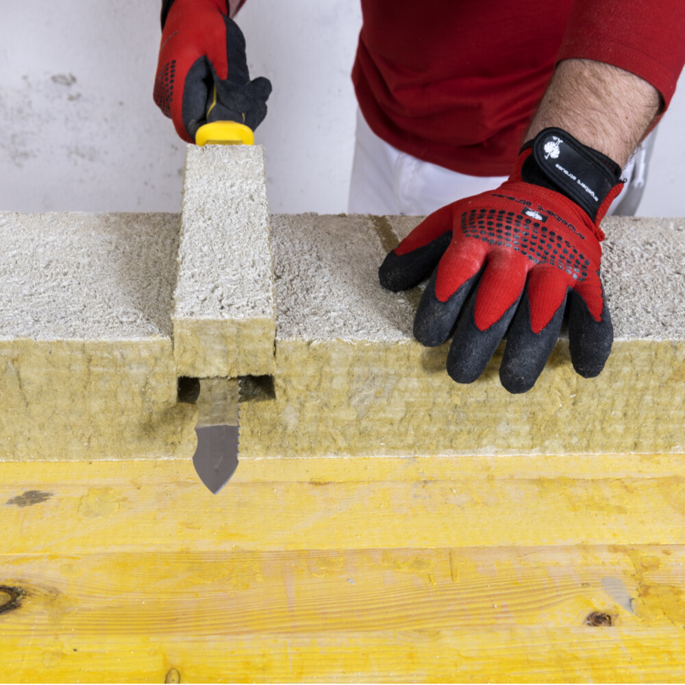 Le panneau isolant minéral pour plafonds de cave peut être découpé sur mesure de manière simple et rapide à l'aide d'une scie à main (scie égoïne).