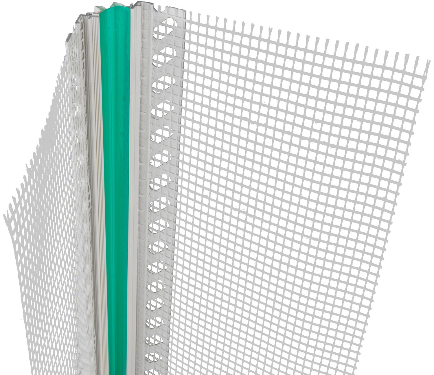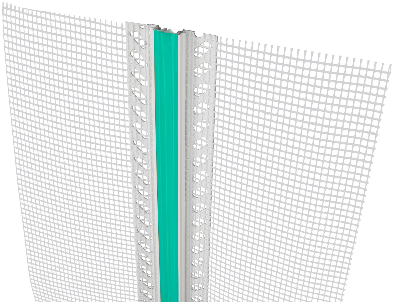 Profilé pour joints de dilatation à finition blanche continue pour utilisation dans les ETICS (isolation de façade) sur surfaces planes ou dans les angles intérieurs. Avec trame bilatérale pour intégration dans l'enduit d'armature.