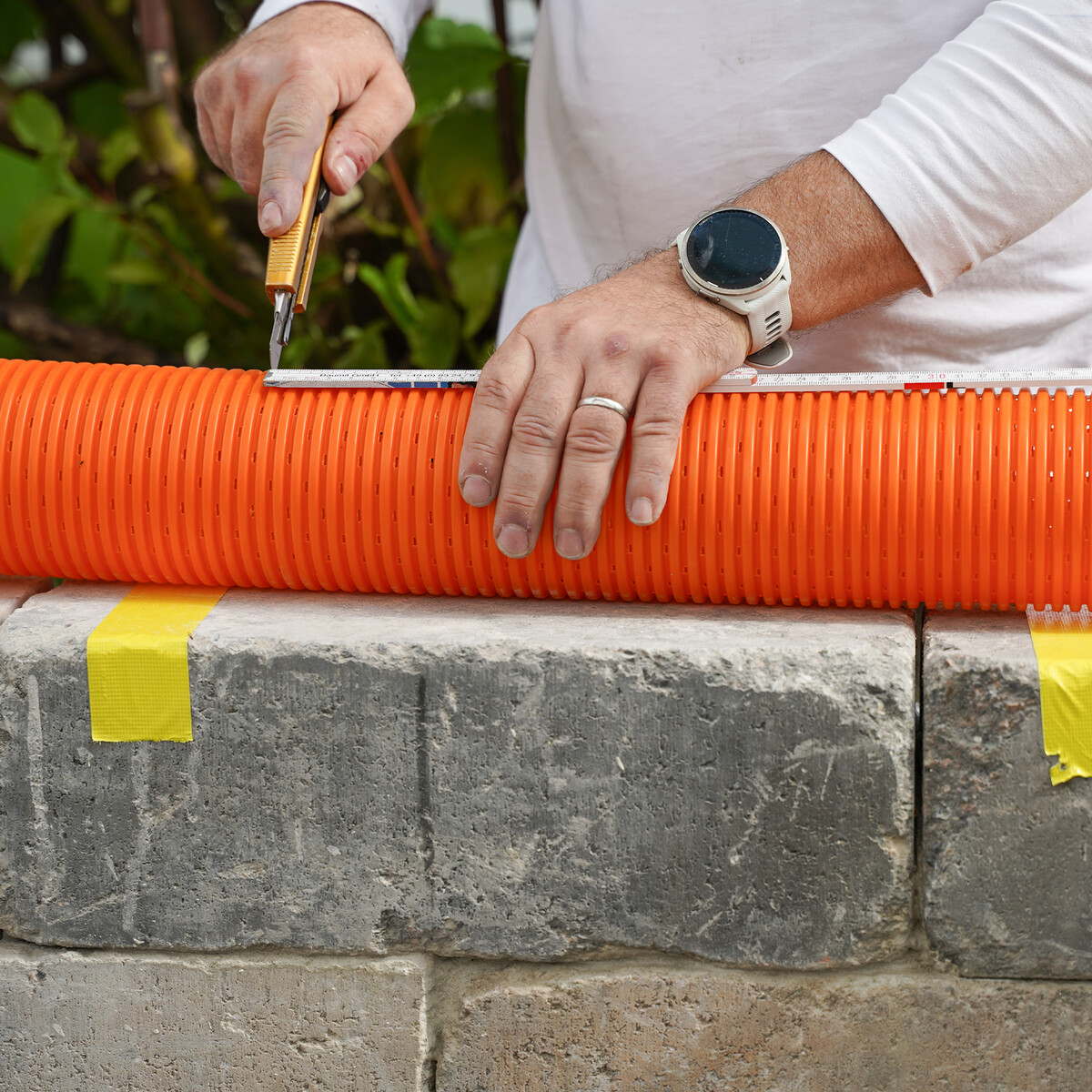 Die Drainagerohre bestehen aus Kunststoff und können einfach mit einem scharfen Cuttermesser oder einer Eisensäge gekürzt werden.