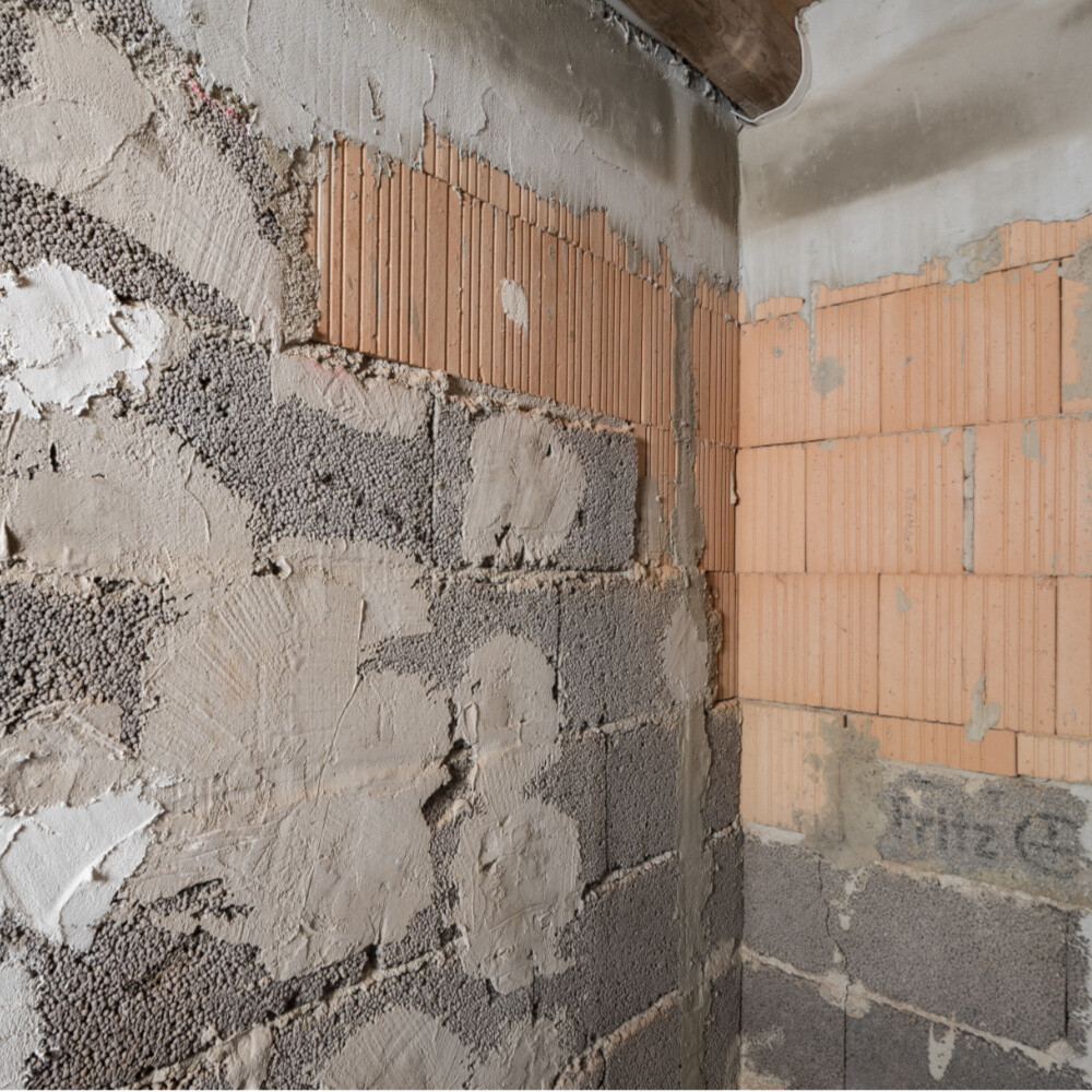 Unterschiedliche Steineigenschaften, wie bei diesem Mischmauerwerk, lassen Spannungen im Putz entstehen. Diese führen sehr schnell zu Rissen im späteren Putz.