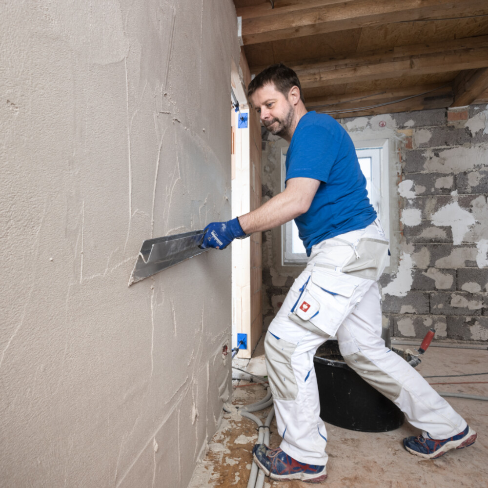Während du beim Auftragen der ersten Lage die Laibung separat verputzen kannst, d.h. also vor oder nachdem du den Grundputz aufgetragen hast, solltest du beim Auftragen der zweite Lage den Kalkputz in der Laibung im gleichem Arbeitsgang auftragen.
