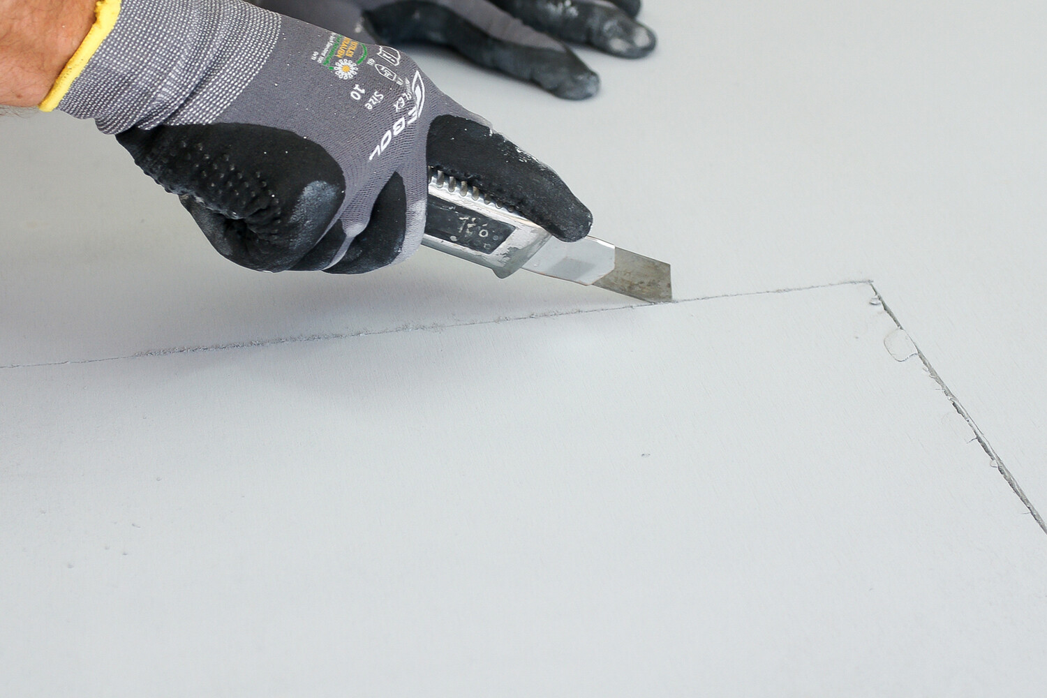 Kalziumsilikatplatte mit Cuttermesser zuschneiden