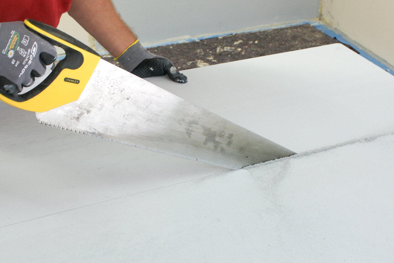 Kalziumsilikatplatte mit Säge zuschneiden