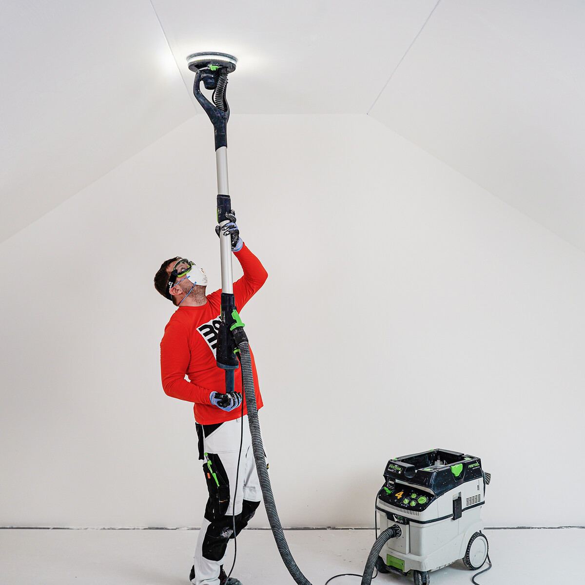 Voraussetzung dafür ist eine fachgerecht montierte Unterkonstruktion sowie eine korrekt ausgeführte Beplankung mit Gipskarton- oder Gipsfaserplatten. Auch die Fugenspachtelung muss bereits abgeschlossen sein. Für ein gutes Ergebnis empfehlen wir, die gespachtelten Fugenflächen vorab oberflächenbündig zu schleifen (Qualitätsstufe Q2).