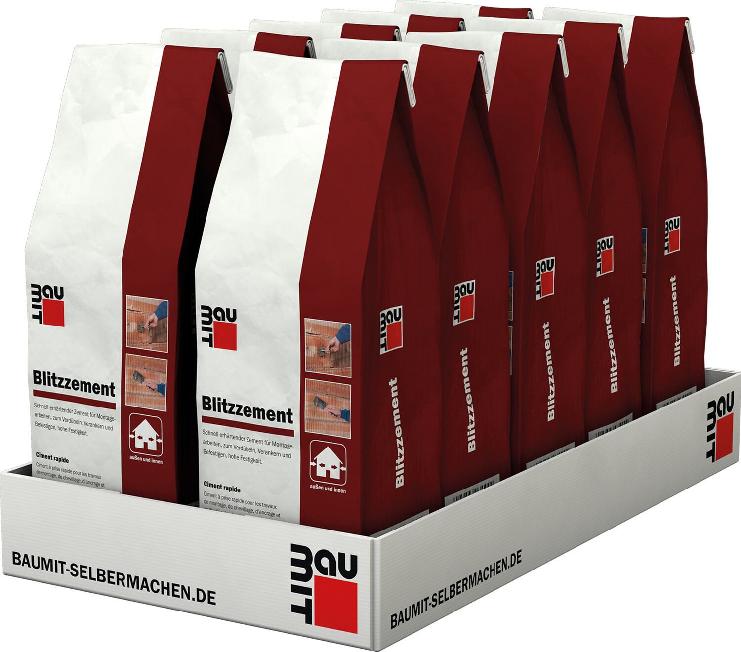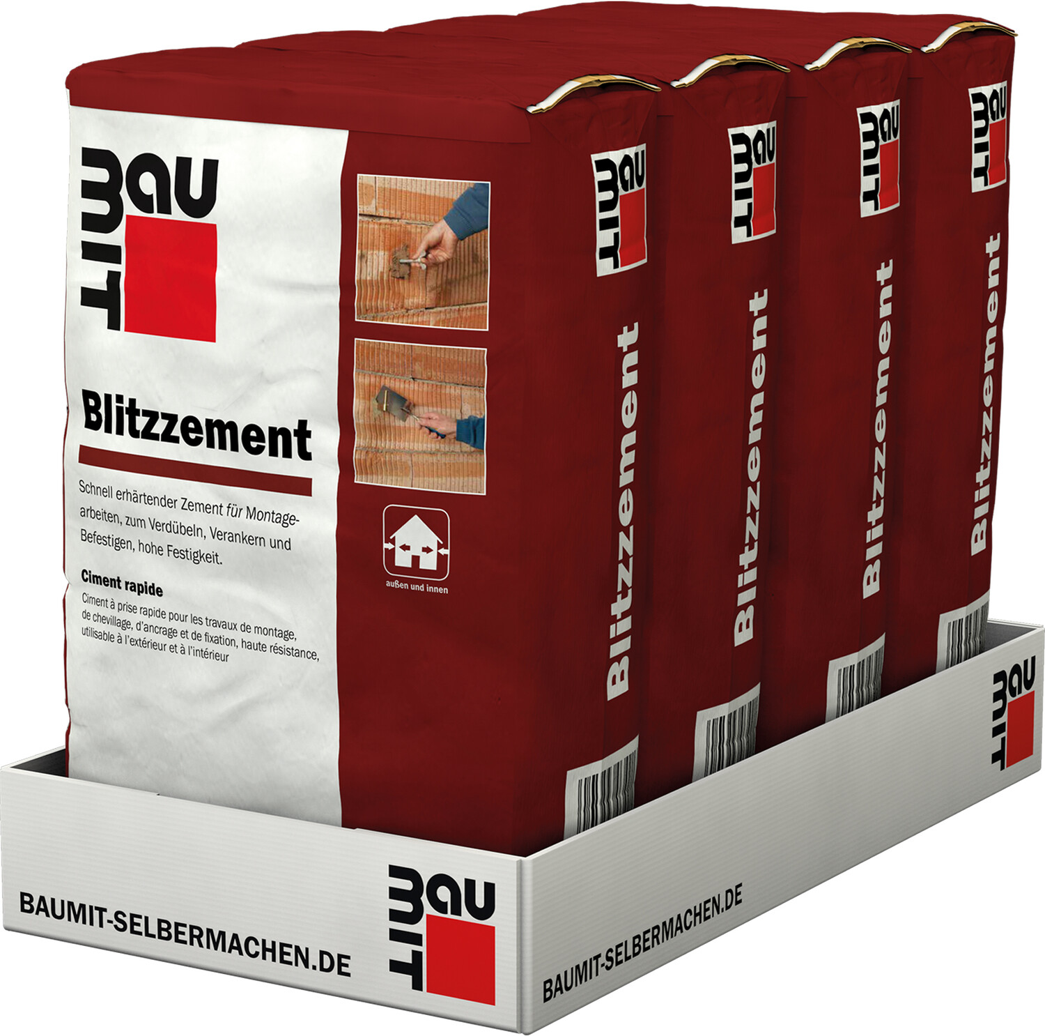 Sehr schnell abbindender Spezialzement mit hoher Endfestigkeit zur schnellen Montage und Verankerung von Scharnieren, Regalen, Dübeln, Elektroinstallationen. Zum Abdichten von Sickerstellen im Mauerwerk oder Beton, soweit keine besonderen Zulassungen erforderlich sind.