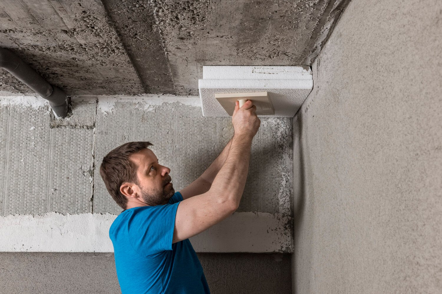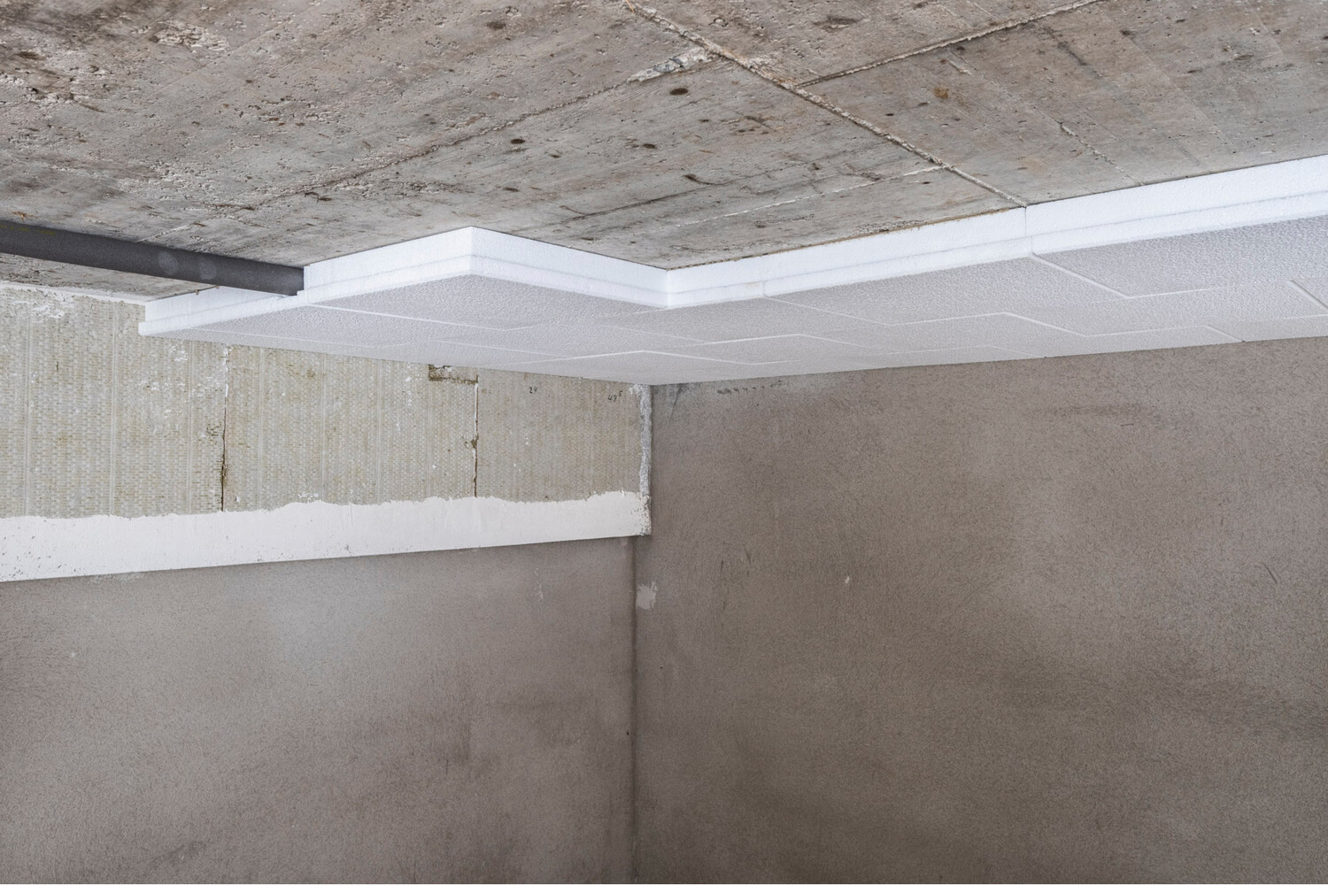 Besonders wichtig ist die Untergrundprüfung und die Vorbereitung der Kellerdecke, damit die Dämmplatten gut und dauerhaft an der Decke haften bleiben. Die Platten werden vollflächig verklebt und benötigen einen sehr ebenen, sauberen und tragfähigen Untergrund.