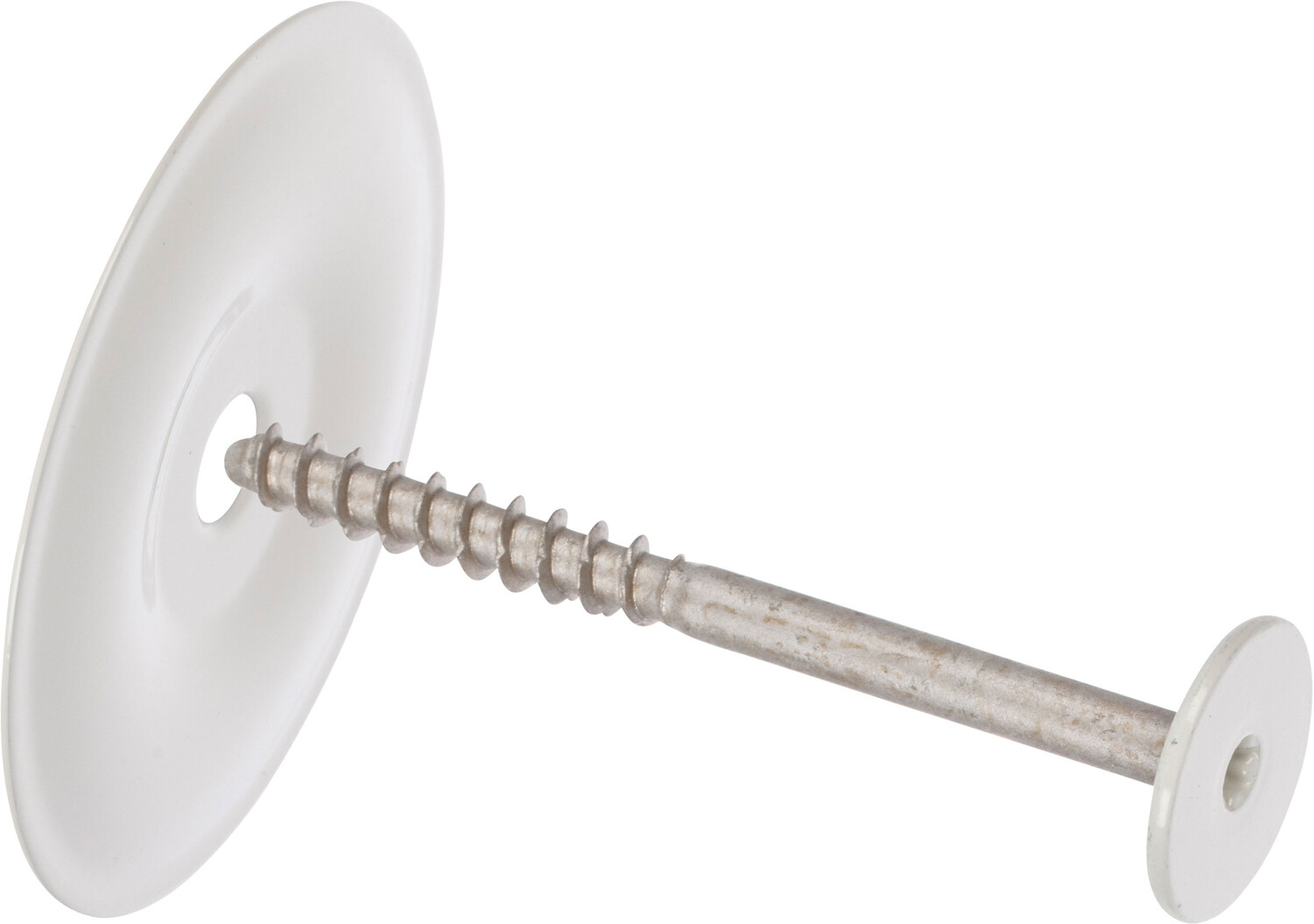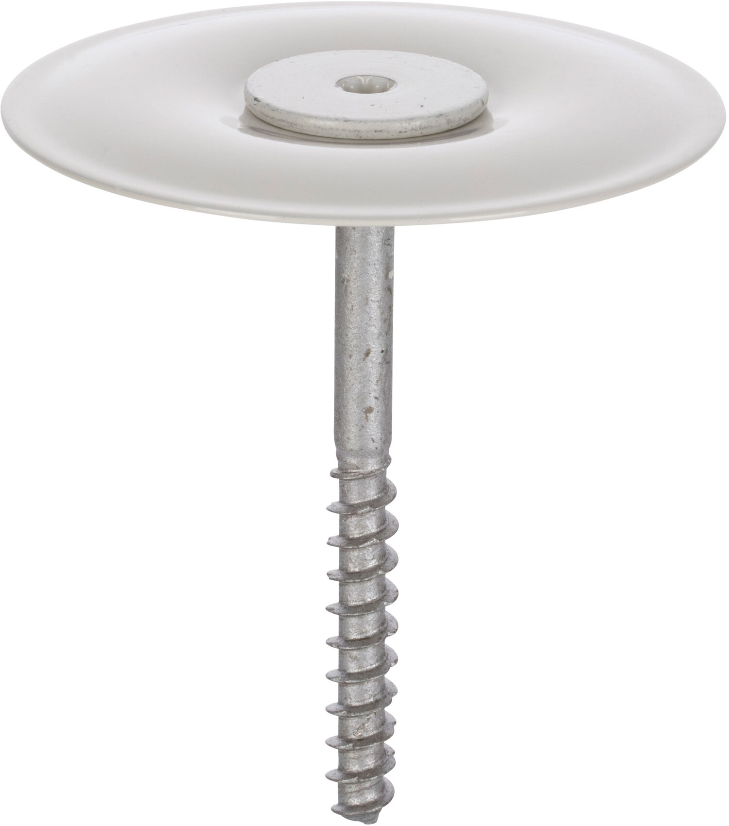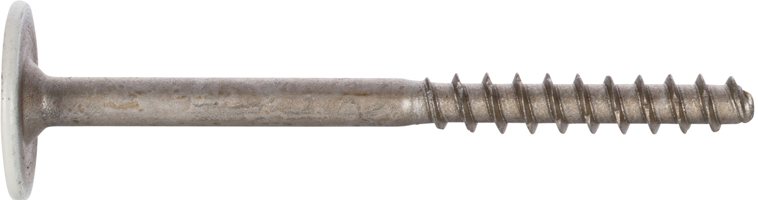 Bauaufsichtlich zugelassene Deckendämmschraube aus Metall für Kellerdecken aus Beton. Nutzbar in Kombination mit Kellerdecken-Dämmteller für Kellerdeckendämmung aus Mineralwolle für die zusätzliche Verdübelung. Weiss lackiert