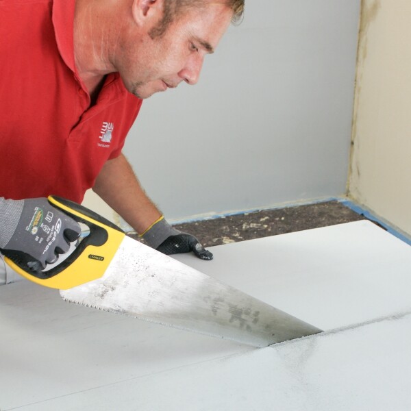 Im Bedarfsfall lässt sich die Baumit Kalziumsilikatplatte sehr gut mit einem Fuchsschwanz oder einer Stichsäge zuschneiden. Bei längeren Schnitten ist es von Vorteil, den Schnitt zuvor mit einem Cuttermesser anzuritzen.