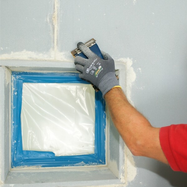 Glätte den frisch aufgetragenen Antischimmel 2 in 1 mit einem Flächenglätter ab. Die Dicke der Spachtelung soll abschliessend