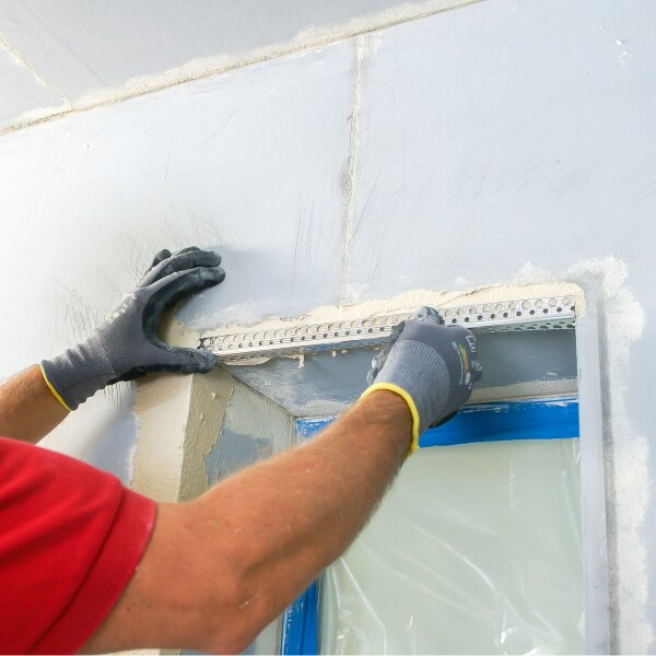 Ecken an Plattenkanten, Laibungen o. ä. kannst du mit einem Kantenprofil schützen. Hierfür haben sich Kantenprofile aus dem Trockenbau bewährt.