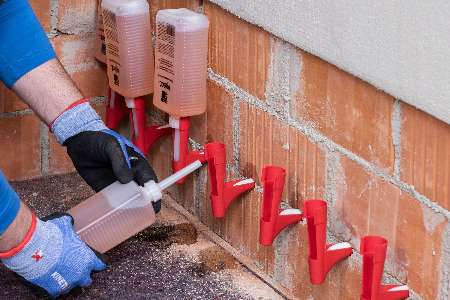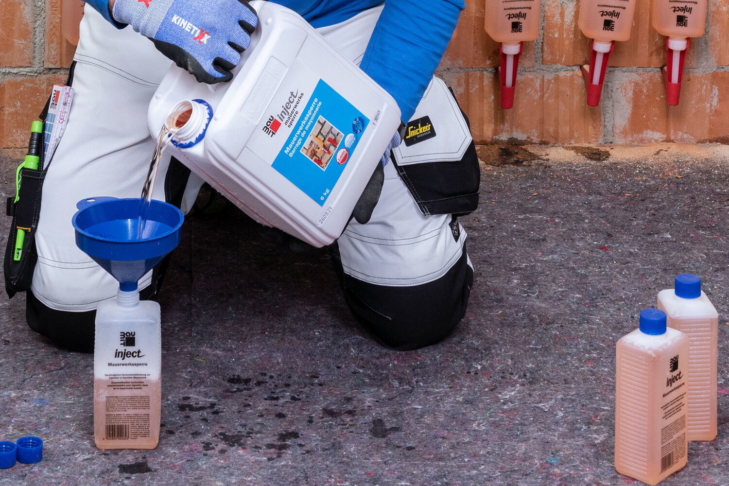 Tiefenwirksames Verkieselungskonzentrat zur Abdichtung gegen aufsteigende Feuchtigkeit im Mauerwerk im drucklosen Verfahren. Wird mit den inject Kapillarstäbchen sicher, schnell und einfach in die Mauerwerksfuge von einschaligen Wänden eingebracht.